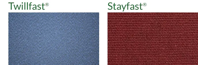 At first glance, Stayfast and TwillFast seem similar. They both use a solution-dyed acrylic that’s been treated with an in-house water-repellant formula that Haartz has created. This treatment allows the materials to repel almost all of Earth’s elements. You can spot the difference between the two materials when you look closely at each. Twillfast uses a twill weave, hence the name, while Stayfast features a square weave acrylic finish. Twillfast comes in six colors and Stayfast is offered in 13 colors.