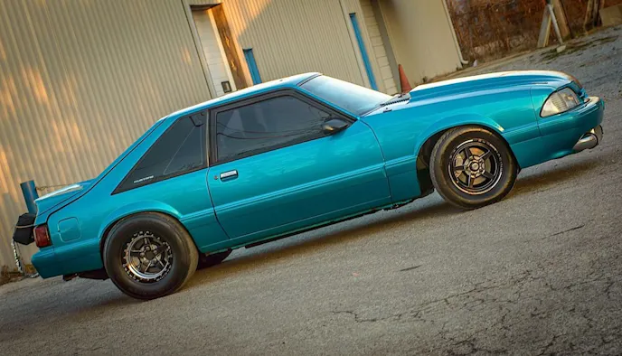 Fox body Mustangs have a reputation for running hard on a small tire with the proper chassis parts. They’re also a light platform, with plenty of parts and aftermarket support available. Peck found an ’89 Mustang locally that the owner was parting out. The car had been a small tire, stock style suspension, small block turbo car. Fortunately the body, interior, and chassis had yet to be sold. He purchased the car as a roller, and brought it back to FTP.