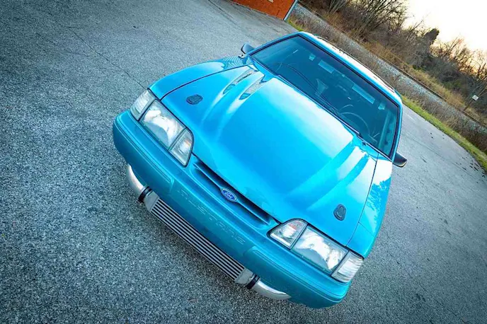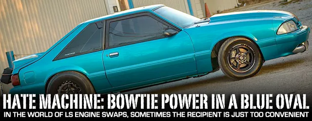 “We started out with just a stock 5.3L LS engine and a small turbo,” he says. An LS engine setup in a Mustang is nothing new, but Peck’s gets more interesting from there. As projects do, the car began to evolve and change over the next few years into the angry, hateful beast that it is today.