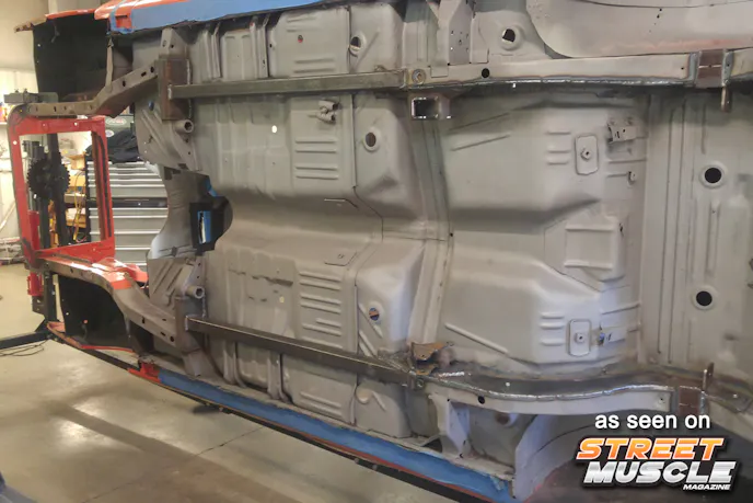 That was a while ago, and Gil recently reached out to us again and showed us some of the progress on Hellbird, and let us know that it’s back on the schedule and it’s being worked on again. Of course, they can’t put a Hellcat engine in a Superbird and keep the stock suspension front and rear, so they’ve been busy adding frame connectors and adding a four-link rear suspension, customizing an oil pan, and developing a Watts-link of Gil’s own design.