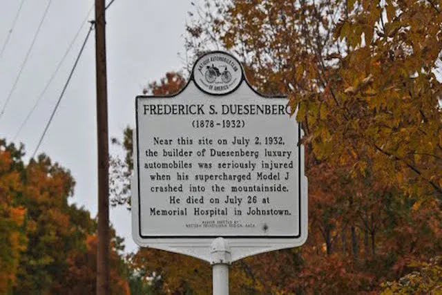 At a meeting of the Society of Automotive Engineers in 1931, Duesenberg predicted that speeds of 100 miles-per-hour would be common on highways. Testing this theory less than a year later, Duesenberg was driving his car at a high speed on the Lincoln Highway near Jennerstown, Pennsylvania, when the car overturned. He died 23 days later at age 55.