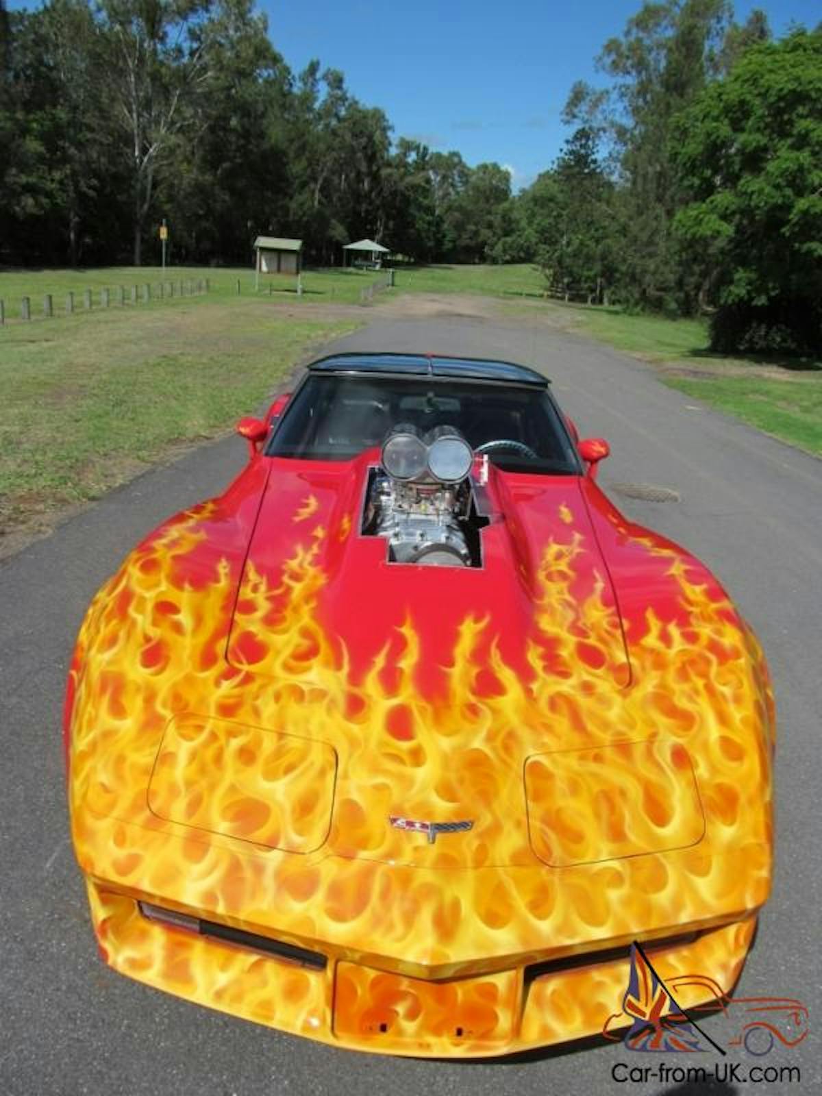 Still, we can give you the clifnotes. This particular Corvette happens to be the third iteration of the famed bowtie sports car. What’s cool about it, other than the fact that it’s sporting some serious attitude courtesy of those rad flames, is what’s under the hood….or out of it.
