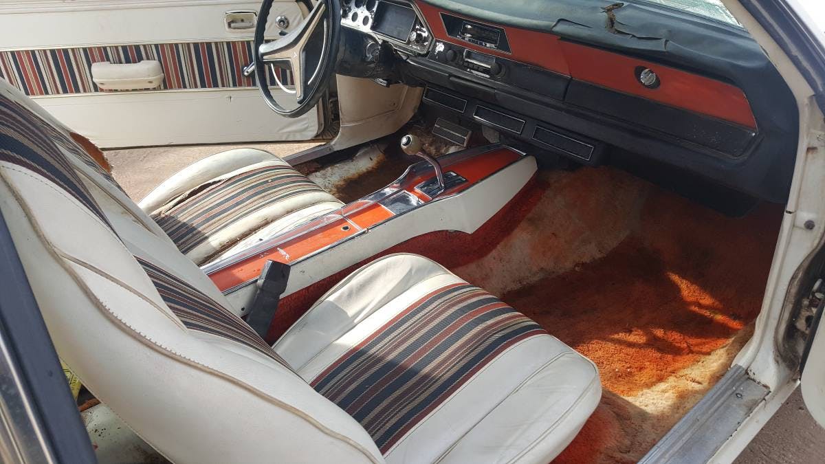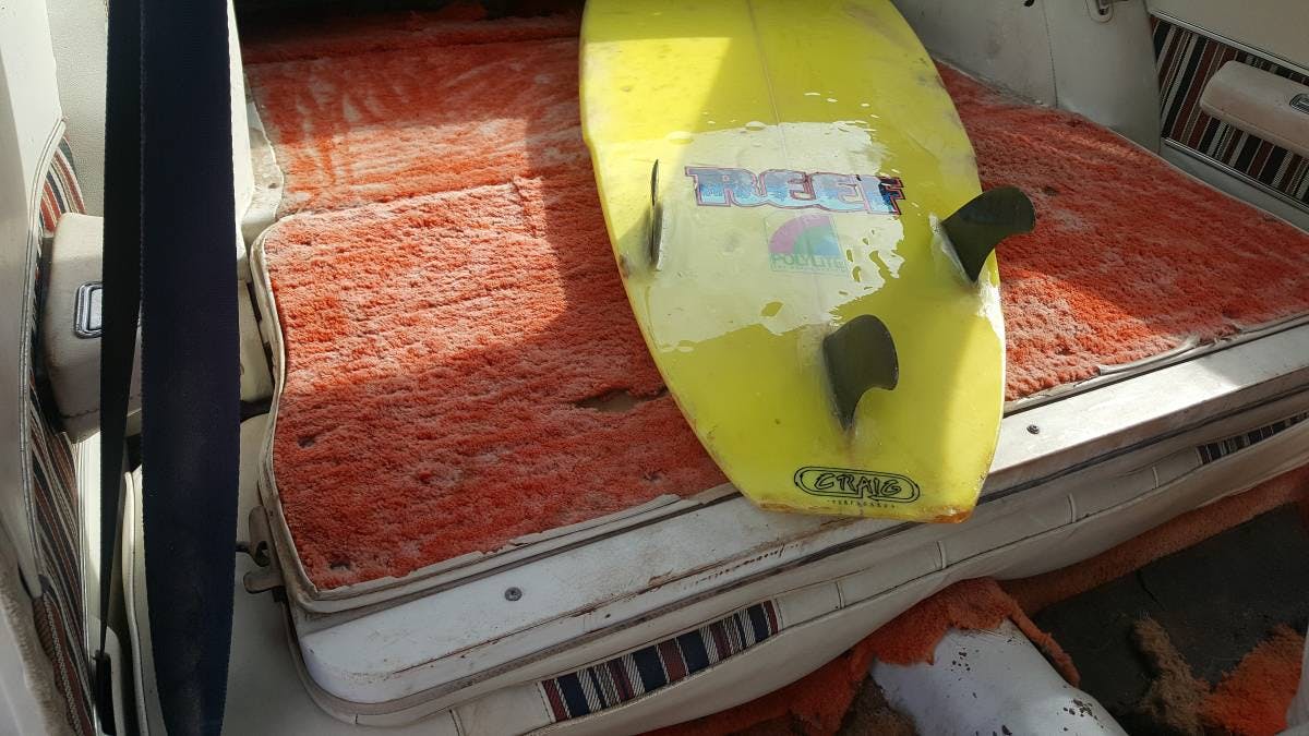 Some people might be intimidated taking on an interior as unique as the Hang 10’s, but it looks to be in relatively good shape – save for the mangled dash pad, flea-ridden carpet, and ripped seats. Even those things could be remedied fairly easily. The “irreplaceable” woven center-portion of the seats seem to be intact, and a capable upholstery shop could match the vinyl and carpet with ease.