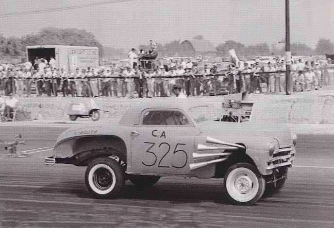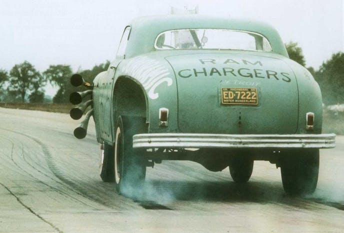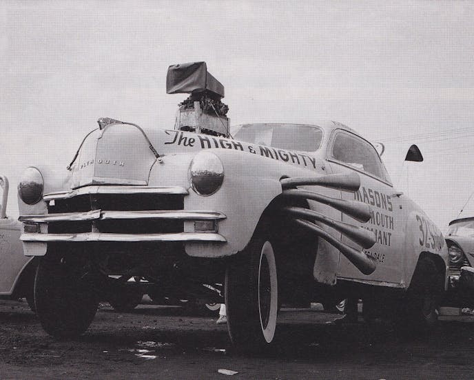 For example, the upward pitched stance of drag cars in the late ’50s and early ’60s. This was a way of solving a major lack of traction that drag racers were experiencing at the time. It all started with one car: the Ramcharger’s 1949 Plymouth that became known as High & Mighty.