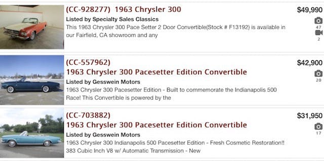 Case in point, and remember the 1967 Nova SS price mentioned earlier, there was a pretty special, fully restored, 1963 Chrysler 300 Indianapolis 500 Pace Car Convertible (Lot 693) that showed up on the block with no reserve. Indy pace cars are always a limited edition, and automakers fought hard for their cars to be chosen for the coveted title as the Official Pace Car. For 1963, there were only 1,861 of these cars produced, making it a pretty rare piece of automotive history.