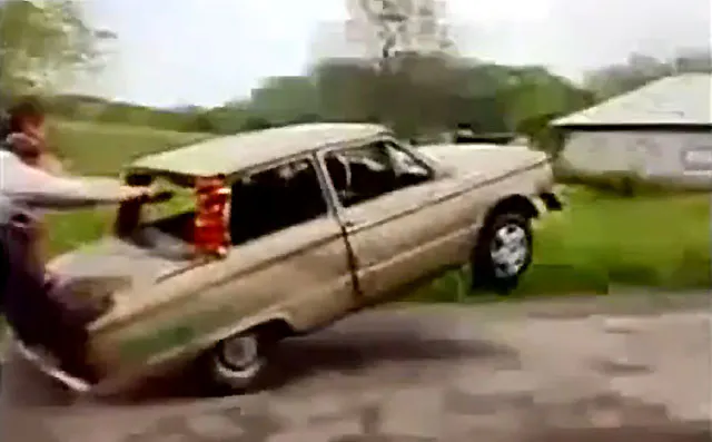 Our case in point is this quartet of automotive enthusiasts who apparently cannot wait for organized drag racing to begin. In this case, the “muscle” in muscle car is quite real… organic, if you will. Pulling wheelies is literally a matter of pulling up the front wheels of this unidentified coupe.