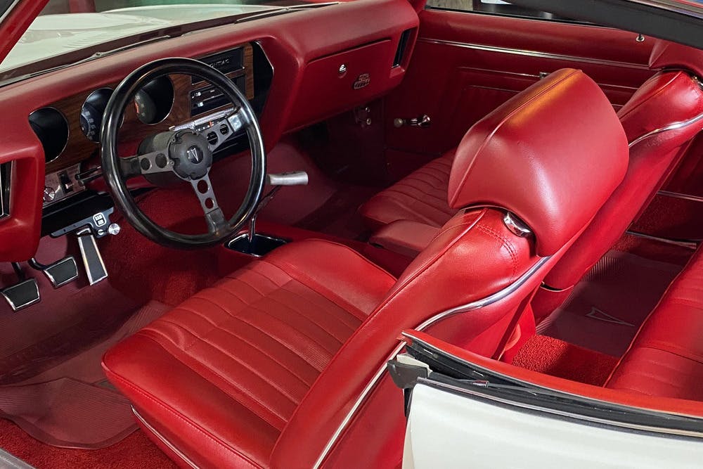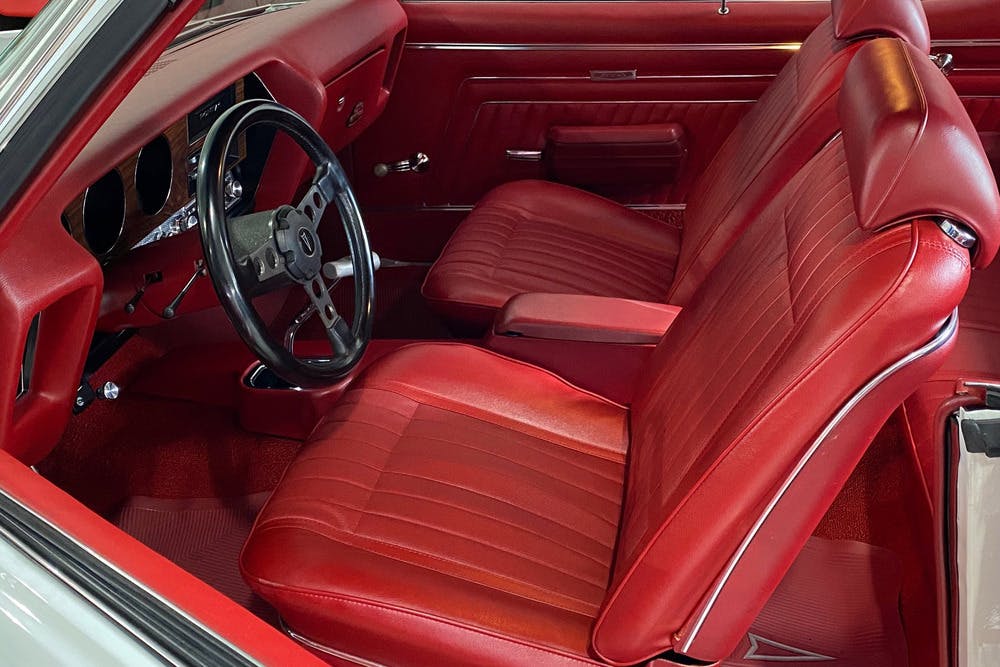 This is a beauty for sure. 1 of only 325 Ram Air IVs with a 4-speed manual transmission produced in 1970. It was originally sold at Victor Motors in Birgham, UT, and spent most of its life there. With only 64,198 original miles it still has its original sheet metal and the Polar White paint is pristine and show ready. The interior is nothing short of amazing itself. Featuring those Legendary bright red bucket-seats, factory thick Formula steering wheel, Hurst T-handle shifter, and full Rally gauge pack with tachometer, it is definitely a sight to behold.