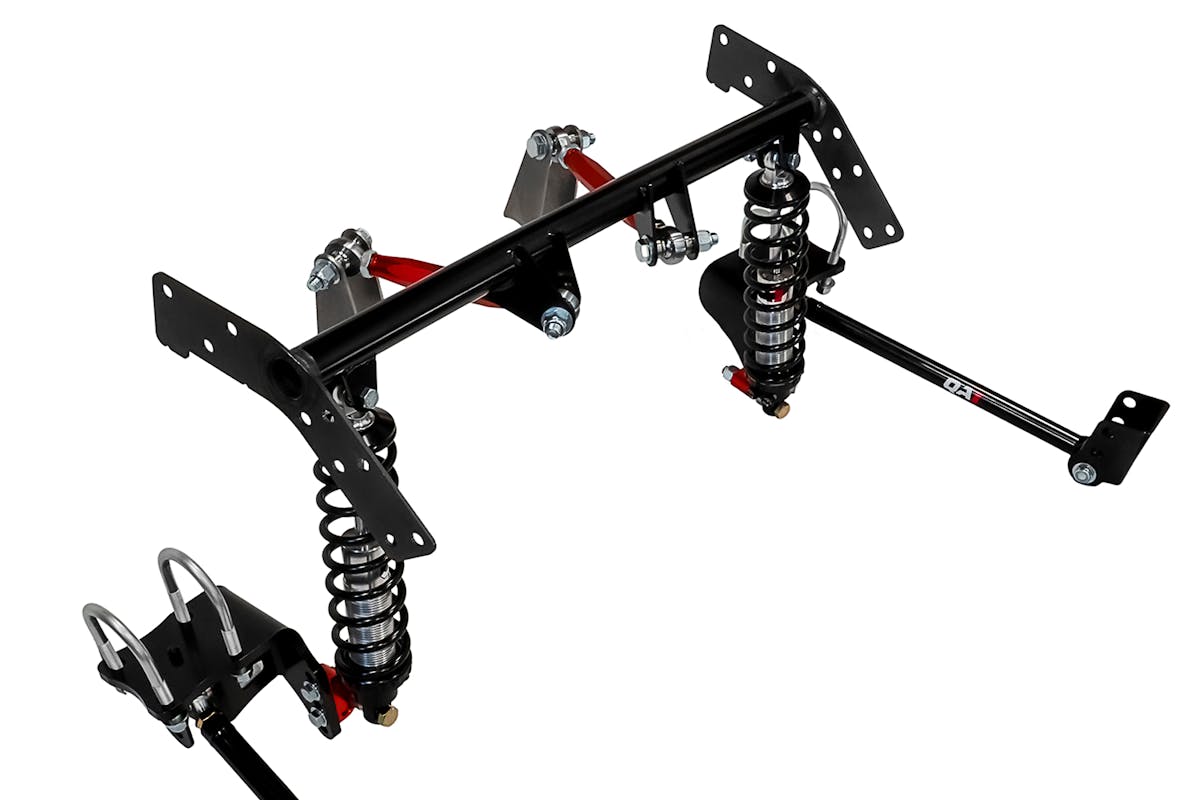 Leaf spring rear suspensions work, but a coilover rear suspension is a better overall system. QA1’s Mopar rear coilover system replaces the leaf spring parts with a modern triangulated four-link design. The QA1 system will work with Mopar 8 ¾” rearends, Ford 9” rearends, and Dana 60 rearends. You’ll gain more anti-squat and pinion angle adjustability with this system from QA1. You’ll also have more room for larger wheels and tires and plenty of space for your exhaust. You can tailor the options of the QA1 system based on how you use your vehicle, including the shocks that come with it.