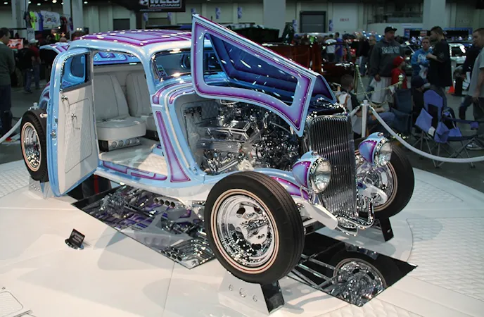 The classic designs never go out of fashion, and if done right – they become timeless. That is just one of the reasons for the great success and much deserved accolades received by Galpin Auto Sports for their amazing creation – the “Iron Orchid” build. This fabulous 1934 Ford five-window coupe was a huge sensation at the 2013 Detroit Autorama where it was awarded 1st Place for the Altered Street Rod class and also captured multiple honors including Outstanding Street Rod, Outstanding Engine in the Rod Catagory, Outstanding Undercarriage and Outstanding Use of Color Design.