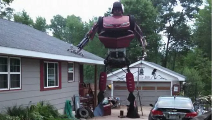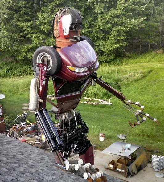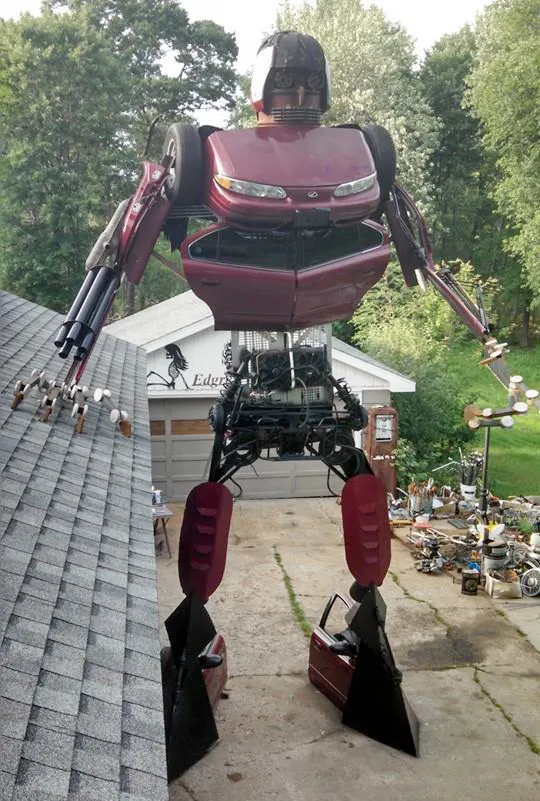With the recent release of Transformers 4, the Autobot now resides on Archer Lane standing guard over the Edgren household. Recently, through a friends suggestion, the artist took on the challenge to build this unique and eye catching masterpiece. Not your normal build project, Edgren was quoted saying, “this type of work was not really his fancy”.