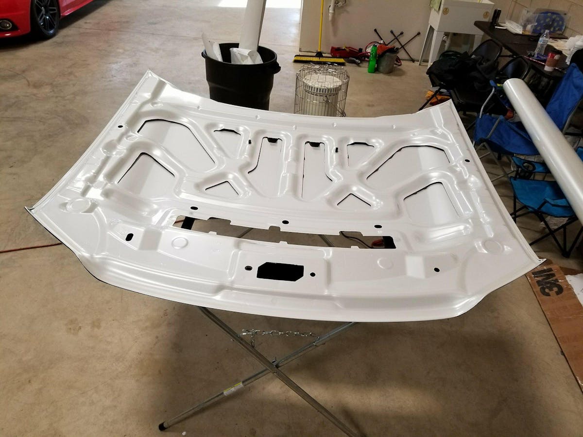 We were so serious about this wrap and making the car white that every body panel that could be removed was. We wanted every piece of exposed grey to be white and as you can see, we went to the extreme. We even plastidipped the engine bay, inner body panels, door hinges and inner gas cap lid black to complete the transformation.