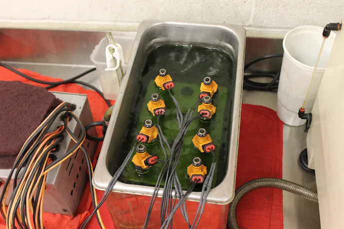 “The re-test is to see if the injectors are flowing even to each other, and if they need additional cleaning, they will go back in the ultrasonic bath, get another back-flush, and be re-tested until they flow within two percent of each other,” said Sanmiguel.