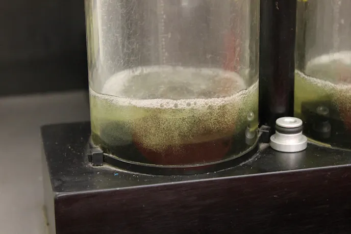 Before submerging the injectors in the ultrasonic cleaning bath, they are connected to box that powers them as if they were running on a car. The injector driver box pulses the injectors to get the fluid through all of the little nooks and crannies within the injector body while the ultrasonic bath uses cavitation bubbles induced by high-frequency pressure (sound) waves to agitate the liquid within the tank to clean the outermost parts of the injector. Our injectors were relatively clean, so they only spent about 10-15 minutes in the bath, but if RC receives a set of injectors that are ridiculously dirty, they can sit in the ultrasonic cleaning bath for up to 6 hours.