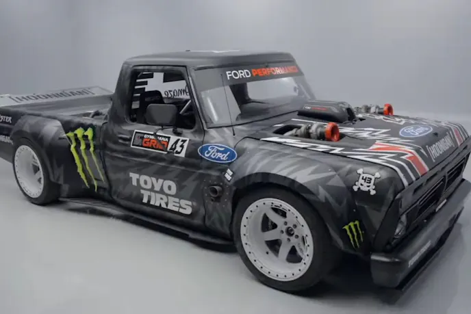 This vehicle will be offered with no reserve. Block and the Hoonigan Racing Division designed and built the all-wheel-drive truck. It gained fame in the Gymkhana Drift video series.