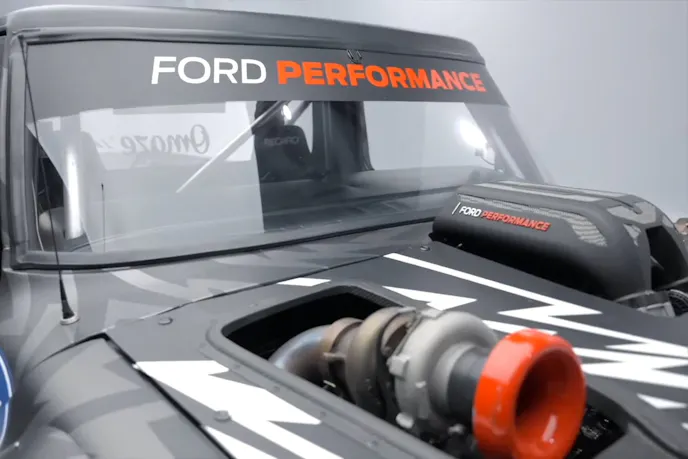 The truck features a 914 horsepower twin-turbo 3.5 liter EcoBoost V6 engine. Its engine delivers power through a custom all-wheel-drive system. Ford Performance designed a 3D-printed intake manifold.