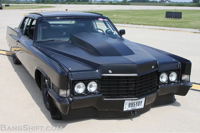 Holy mother of… Check out Sean Mote’s 1970 Cadillac Coupe Deville from hell. Originally a burned-out junker left for dead in Ohio, Mote rebuilt the car as a murdered out, high speed mega-behemoth. The guys over at BangShift got up close to it and lived to tell the tale.
