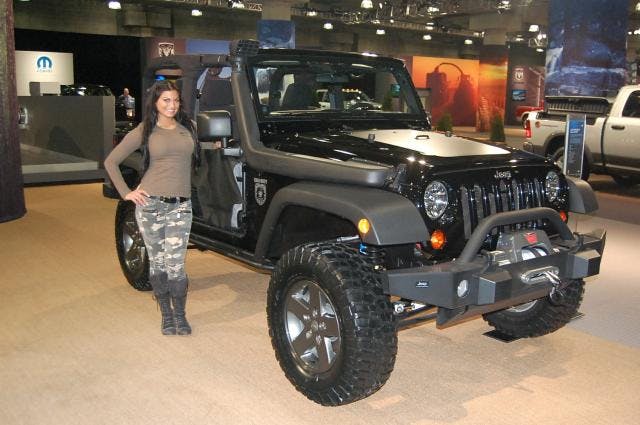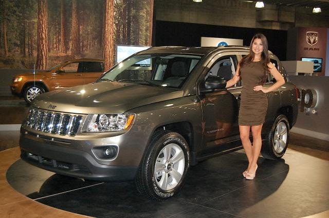 I feel totally sorry for this woman. She’s stuck in the Jeep display showing off the Compass, which was Jeep’s version of the rolling hemorrhoid known as the Dodge Caliber.