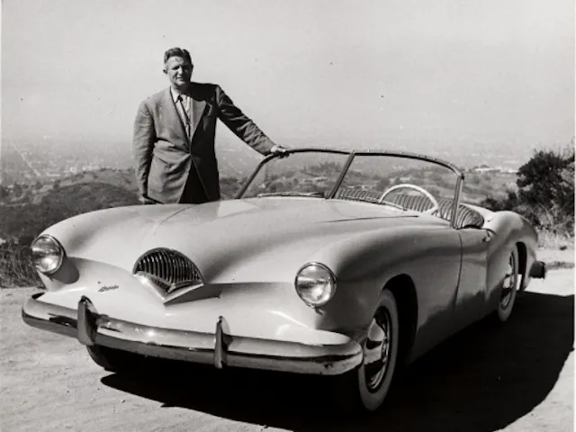 Darrin continued to work as a designer in the industry until his passing in 1992. His grave marker says: Howard “Dutch” Darrin, Automotive Architect. Darrin had built and modified cars for studio executives and film stars, including Clark Gable, Tyrone Power, Errol Flynn, Chester Morris, Al Jolson, Greta Garbo, Dick Powell, Joan Blondell, Rosalind Russell, Ruby Keeler, Preston Foster, Ann Sheridan, Constance Bennett and Gene Krupa. These cars made him the first “Auto Designer To The Stars,” a title that has been used many times since. Despite the failure of the Kaiser Darrin sportscar, he is considered one of the superstars in automotive design.