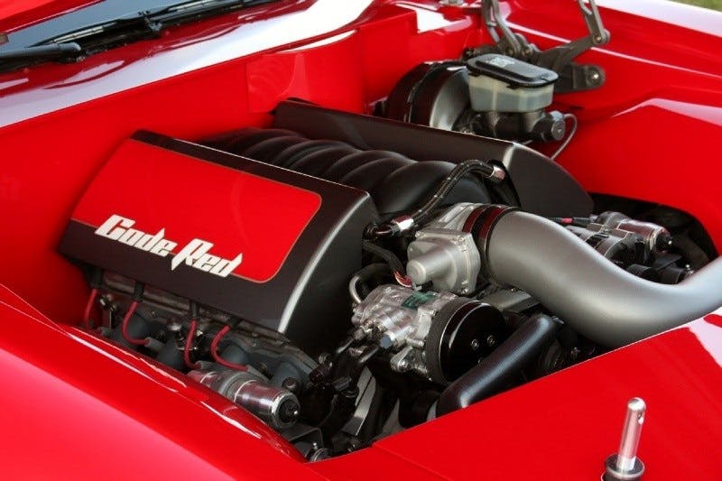 With 416ci, Code Red’s L99 small-block with variable valve timing gives the car quite the boost with 575hp at 6,300 RPM and 540 ft-lbs of torque at 4,600 RPM. Backing this potent piece is a paddle-shifted 4L80e transmission built by Bowler, which transfers all the car’s power to the ground via custom Rushforth wheels wrapped in meaty Nitto rubber. Underneath, the car sits on a complete Detroit Speed Engineering suspension system with a front subframe assembly and a four-link rear. All this is backed by beefy 6-piston Baer brakes for perfect pro-touring braking power.