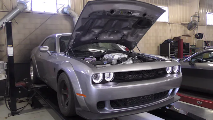 In a recently posted video, the company installed its S1025 kit on a 2018 Jeep Grand Cherokee Trackhawk. Stock, the SUV churned out a baseline 590 rwhp and 583 lb-of torque. To give the Trackhawk an infusion of performance, the Livernois team performed a flex-fuel calibration upgrade and custom tuning. They added a billet 2.85-inch diameter supercharger pulley, and an EvenFlo thermostat, tuned the transmission, installed Injector Dynamics ID13000X2 injectors, and high-flow air intake. To transmit all the power to the ground, the Trackhawk received a full-suspension upgrade as well.