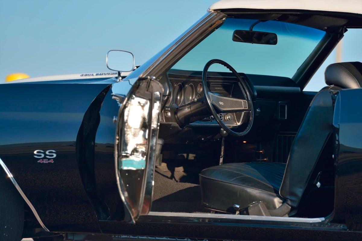 The current owner took the vehicle to a famous restoration company in Missouri, Roger Gibson Auto Restoration, where they described it as “a truly exceptional example” and “absolutely rust free” with “no wreck damage.” The car got a fresh coat of paint, new OE-style striping, exhaust, and a Hurst shifter. Its 454/450 horsepower LS6 was rebuilt and balanced to LS6 specs, but the vehicle retained the original suspension, driveline components, and all stock body parts – all the way down to the trunk mats and spare tire that are untouched.
