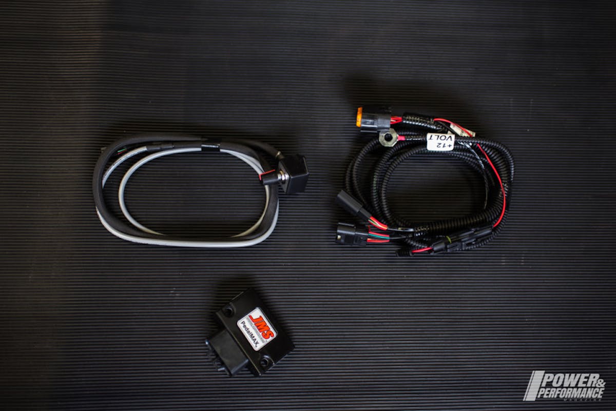 According to JMS all modern vehicles are equipped with a “drive-by-wire” electronic throttle, which is said to have poor throttle response and lag, especially in performance or racing applications. To solve this, JMS developed PedalMAX, a drive by wire throttle enhancement device.