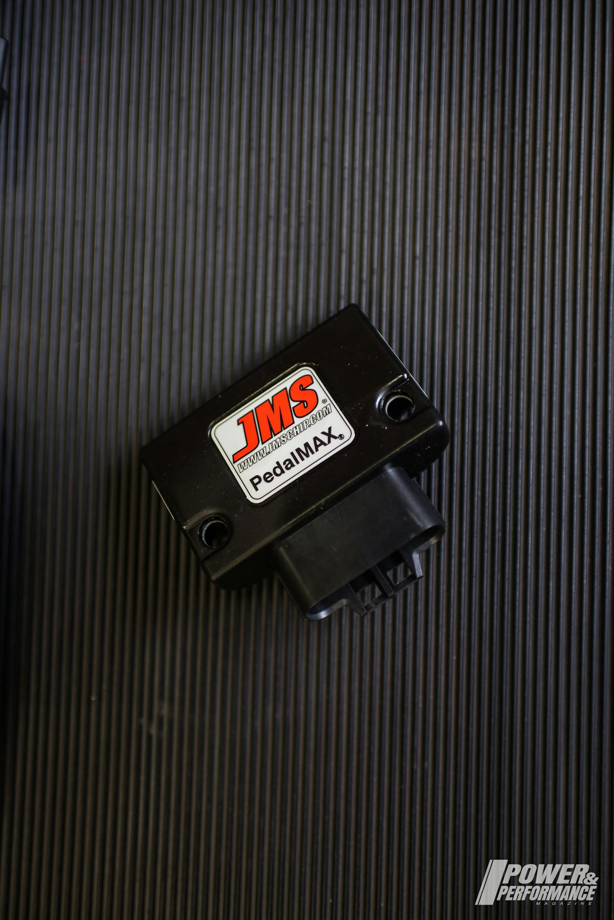 According to JMS all modern vehicles are equipped with a “drive-by-wire” electronic throttle, which is said to have poor throttle response and lag, especially in performance or racing applications. To solve this, JMS developed PedalMAX, a drive by wire throttle enhancement device.