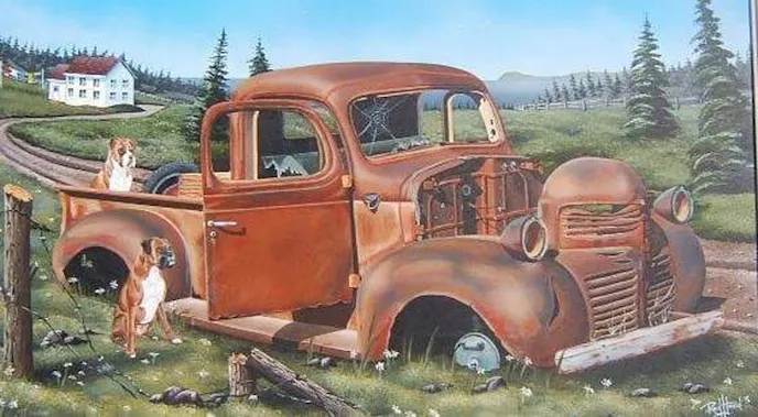 Rod also took up painting at an early age and said that he knew he would end up painting something car related. Comparing his painting of the truck against the original photograph above just shows that there is true passion here.