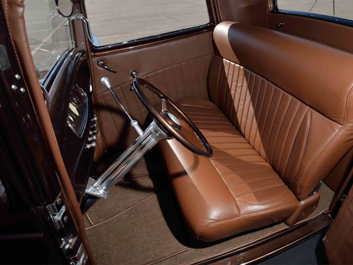 Just as careful attention was paid to engine compartment, the interior was treated to equally luxurious customization. What appears to be a buttery soft brown leather covers the bench seat, door panels, and passenger compartment. For more details please visit the Mecum website and make sure to mark your calendars for this upcoming auction.