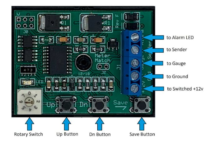 The MeterMatch Module interfaces between the fuel sender and the gauge to correct ohm mismatch and erratic movement due to fuel sloshing.