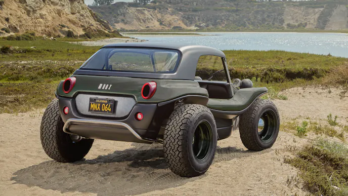 With a choice of either a 20-kWh or a 40-kWh battery pack, the new era Manx will be rear-drive via two electric motors. Power figures are hazy but the best guess is 202 hp and 240 lb-ft of torque while delivering 300 miles of range with the bigger pack. The Manx could sprint to 60 mph in 4.5 seconds, so this little kitty might have some serious scoot.