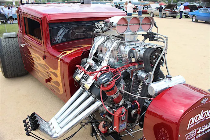 When we first walked up to Chad Bonneville’s Barracuda, it simply looked like a nice, clean A body car with some serious rubber in the rear. Then he opened the hood and we saw what all the fuss was about. Talk about getting someone’s attention, that ProCharger was more go than show.