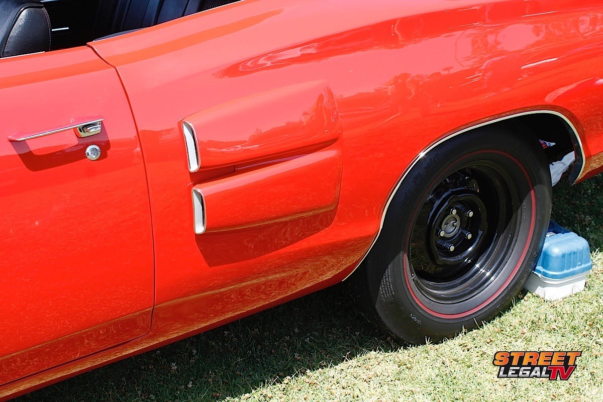 Sergio Leoni owns this 1973 Plymouth ‘Cuda, and it always draws us in. The 440 big-block was stroked out to 500 cubes, and the car was mini-tubbed to accommodate the massive 15×10 inch rear wheels, giving this car the right stance and appearance for a musclecar on ‘roids.