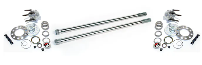 That flanged axle serves double duty by both supporting the weight and forces at play as well as transmitting all the power to the wheel. By swapping over to a floater-style setup, you fix the knock-back and begin to delegate the forces a little more evenly. With a floater, the weight of the vehicle is supported by the hub and snout, while the power is transferred by a double-splined axle shaft that is only required to supply power to the wheel.