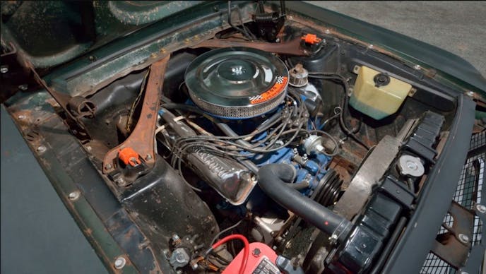 “And that’s where it sat up until 2001, when Ford’s introduction of a Bullitt Mustang GT inspired the then-retired Robert and his son, Sean Kiernan, to start putting some work into the car—not enough to alter the history, but just enough to make it drivable once again. However, after work began on the Mustang, Robert was diagnosed with Parkinson’s disease and work stalled. When Ford introduced a second Bullitt edition in 2008, the pair was once again inspired to have the engine rebuilt, but once again, life got in the way; as Robert’s Parkinson’s worsened, maintaining the farm and horses became a more important task for Sean.
