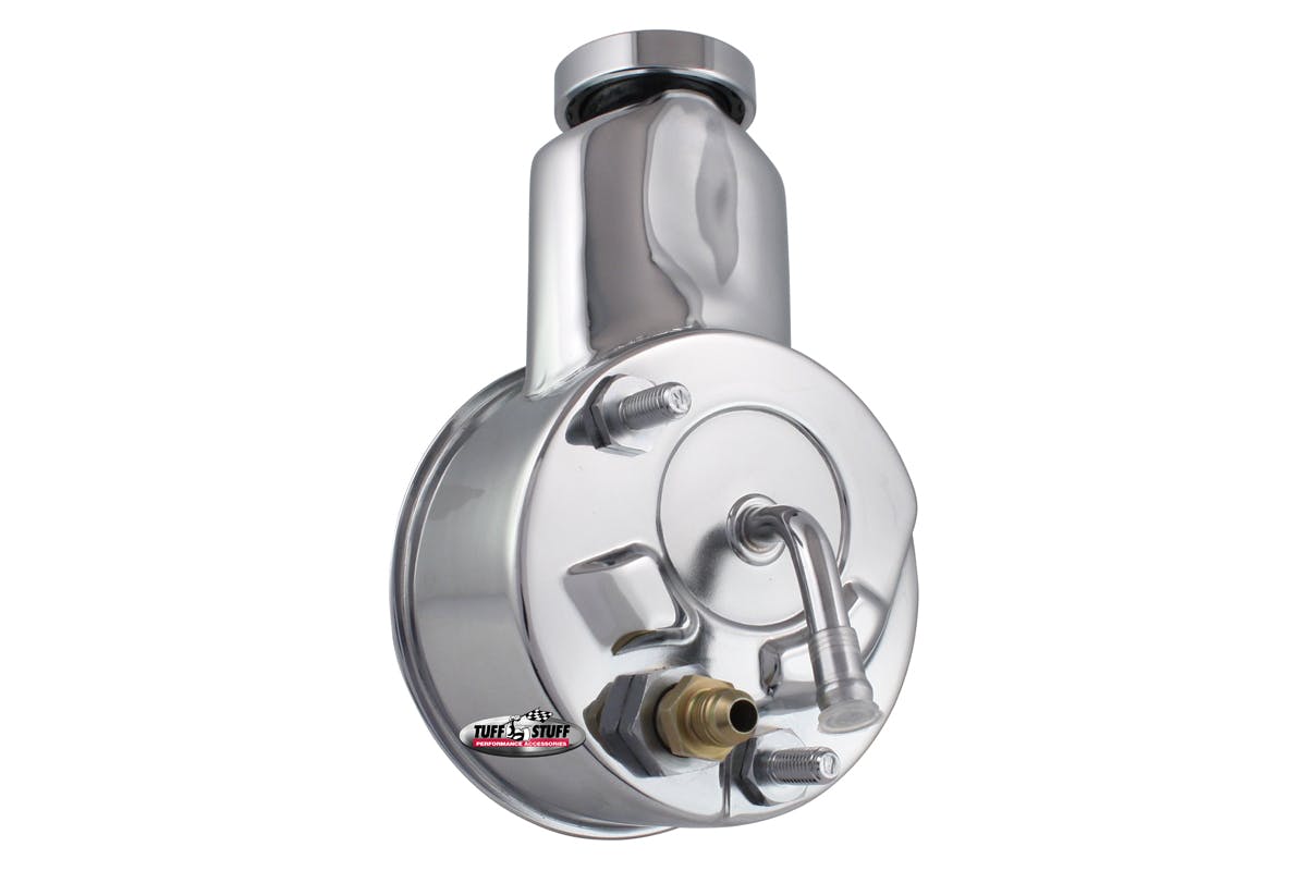 Tuff Stuff Performance Accessories is pleased to announce the availability of Saginaw style power steering pumps for early GM muscle cars and hot rod applications. Made from 100% new components, these pumps feature a reservoir made from 20 gauge cold rolled steel and are furnace brazed for premium quality. Pumps have a 5/8” keyed shaft for use with a bolt-on pulley – not included – and have a 5/8-18 pressure port. Specific pumps include a male AN-6 port adapter.