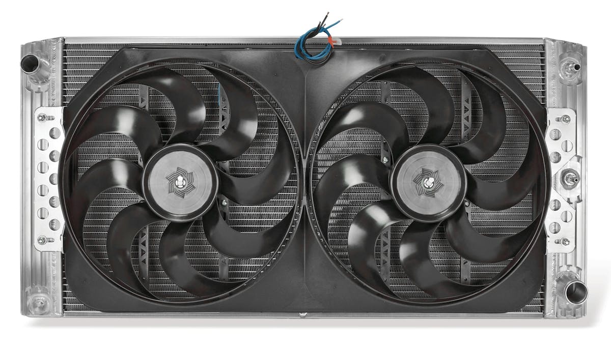 If you’re driving a 1999-’12 Chevy or GMC full-size truck or SUV, you probably know you need a better cooling system. Flex-a-lite has introduced the direct-fit Flex-a-fit aluminum radiator and electric fan combination for these trucks and SUVs, and the benefits are numerous. First, the new radiator offers more coolant capacity than the factory unit. Second, the sidetanks with patented “T” channels on the 2-row, all-aluminum core dissipate heat more efficiently. Third, the dual 15-inch fans move up to 6,000 cfm of airflow. Fourth, the Flex-a-lite variable speed controller allows you to adjust the temperature at which the fans turn on. There are lots more reasons to switch to a Flex-a-lite radiator and fan!
