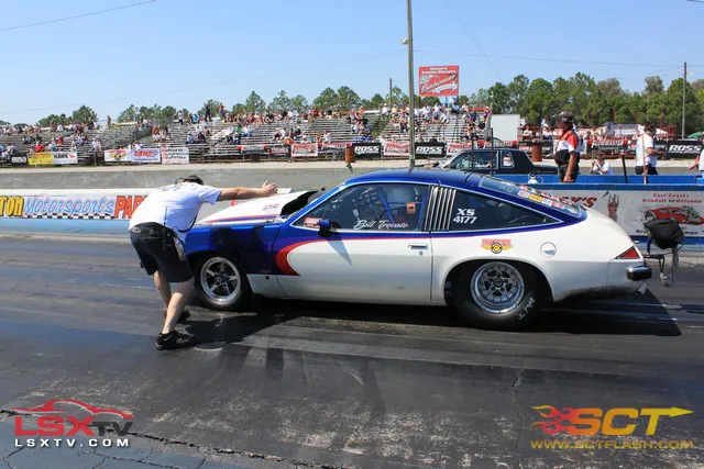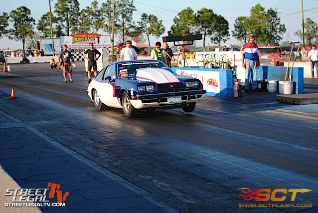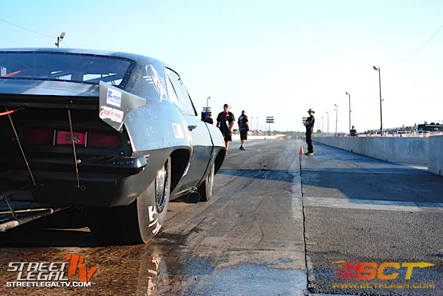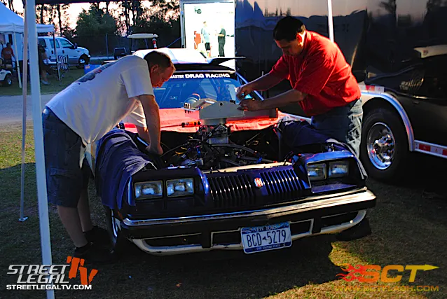 Bill Trovato is working on his 78 Oldsmobile Starfire to get it ready for tomorrow. His Starfire is powered by a 403ci Olds with a 450 shot running through a powerglide. He will be running the the Extreme Street class. Sponsors: M/T Tires, BTR Performance, and Edelbrock.