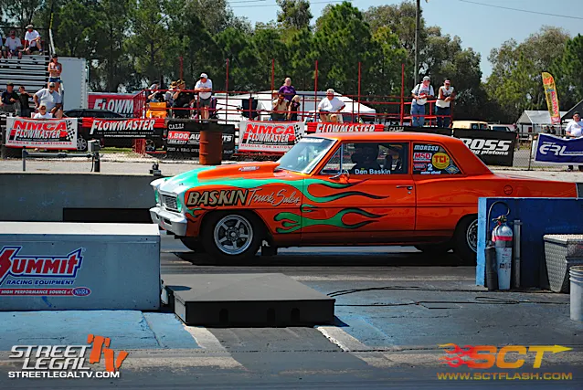 In round two of Mean Street Don Baskin came out hard with the little Chevy II and improved on his earlier run with a 9.83 @ 133 to keep the number one spot.