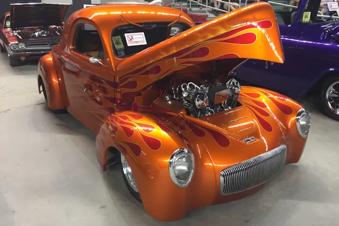 The exceptional vehicle winners of this year’s Outstanding Use Of Color at the Superbowl of NSRA events defined themselves as part of a choice group. Pastor Jim Rowlett, our inside man at the NSRA, confirmed that Ulysses Reynolds’ 1936 Willys Sedan, Wayne and Joann Hansen’s 1956 Chevrolet C1500 pickup, and Kurt Richter’s 1941 Willys Coupe took the honors.
