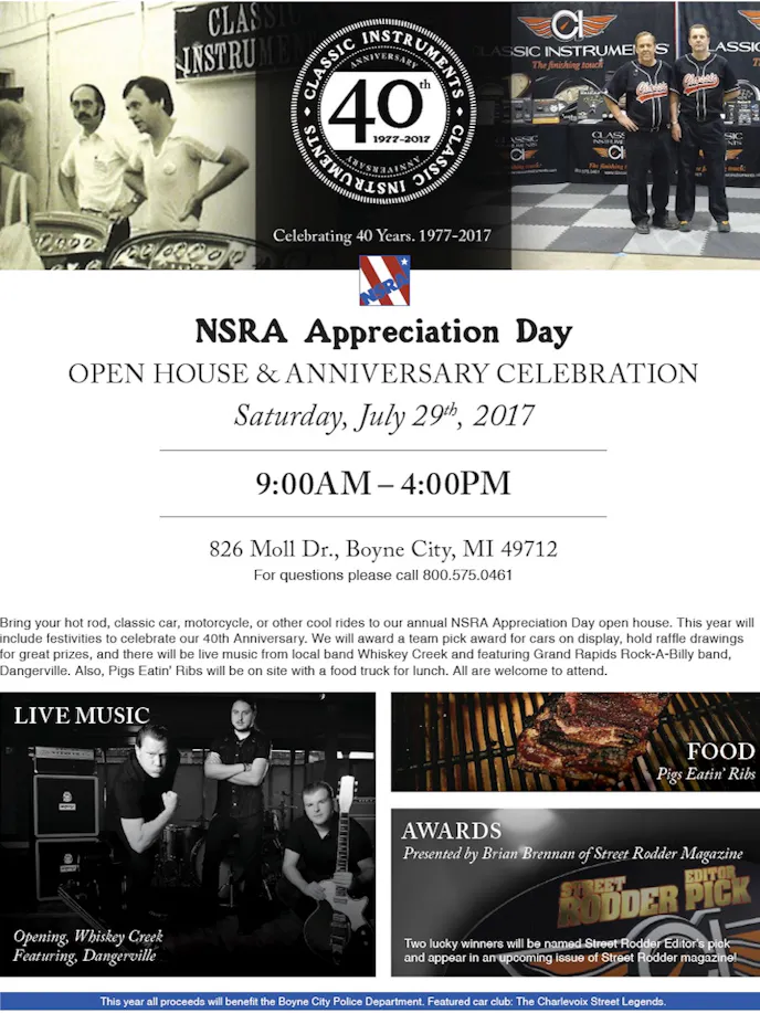 Classic Instruments, the gauge company that prides themselves on building better gauges or not building them at all, is celebrating their anniversary with an open house event on Saturday, July 29, 2017. The open house is not only an opportunity for the company to show their facility and products with pride, but the event is also a chance for the company to show appreciation to the NSRA and their members.