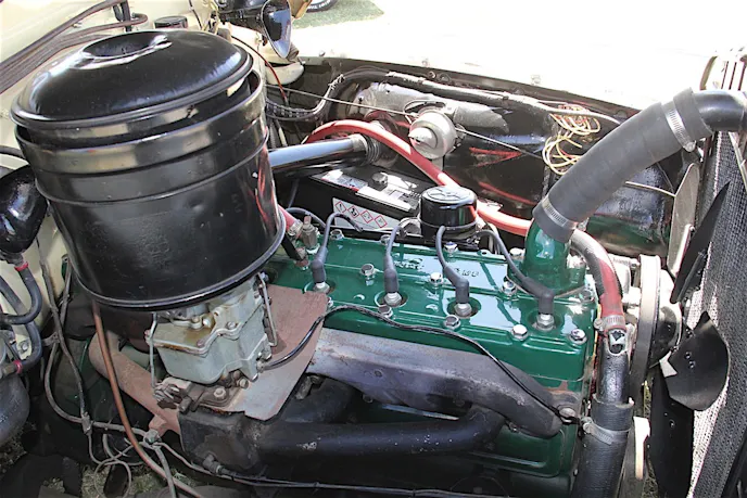 Wire spoke wheels were optional on this model, and clearly displayed on Cody’s car. Stock 19-inch wood spoke wheels were normally installed at the factory. “Everything works,” said Cody, “Except the fuel gauge. I’ve run out of gas twice.”