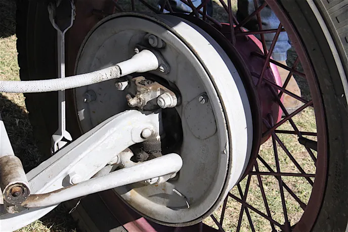 Wire spoke wheels were optional on this model, and clearly displayed on Cody’s car. Stock 19-inch wood spoke wheels were normally installed at the factory. “Everything works,” said Cody, “Except the fuel gauge. I’ve run out of gas twice.”