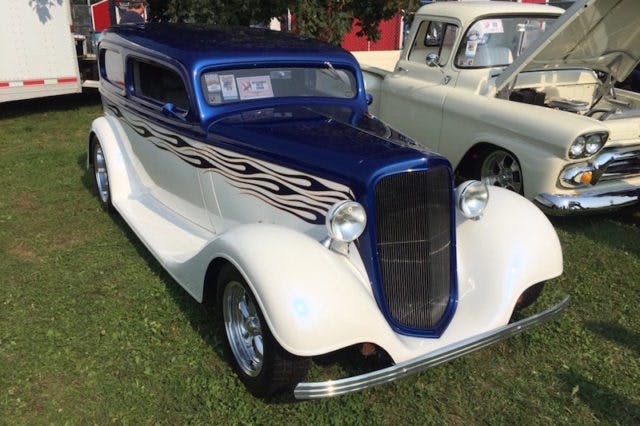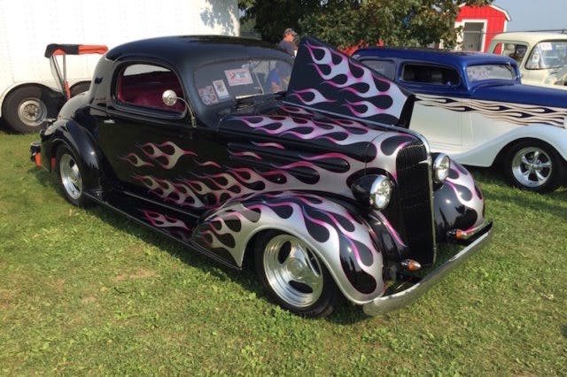 The exceptional vehicle winners of this year’s Outstanding Use Of Color at the NSRA ’s Street Rod Northeast Nationals in Burlington, Vermont defined themselves as part of a choice group. Pastor Jim Rowlett, our inside man at the NSRA, confirmed that Brian Thatcher of Ticonderoga, New York, with his 1936 Chevrolet Coupe and Earl & Georgia Herman of Pecatoricia, Illinois, in their 1934 Chevrolet Sedan Delivery took the honors. This made the event a bowtie colored weekend.