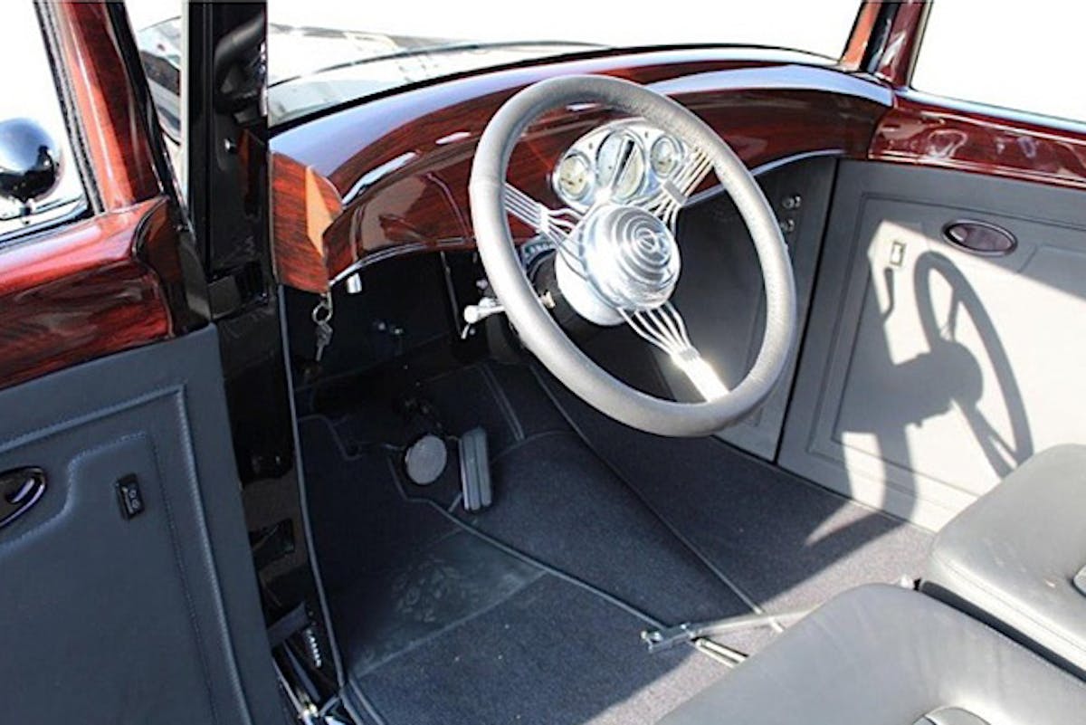 Moreover, the body was completely hand-formed by Marcel’s Custom Metal Shaping in Corona, California. With an elongated roof and side panels, this Model B was completely reimagined, fitted with custom fenders and a lift top.
