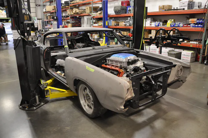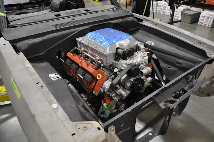 Like all of their B and E body Mopar offerings, the chassis is built tough. As it should be, to handle the 707hp monster that is fixing to sit between the frame rails. Schwartz Performance sourced the drivetrain from Mopar Performance, and the beast of an engine will be backed by a built 4L80E transmission feeding power to a Moser full floating 9-inch rearend.