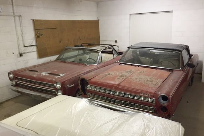 The 390 car is a roller only, so the engine and trans are missing from the car, but the 427 does have the correct date-coded GT390 heads, intake, and carburetor; it also has the dash mounted tachometer, which is always a cool little treat on a classic such as this. Both are said to be very solid and 90% rust free, but we’re not exactly sure how that can be measured.