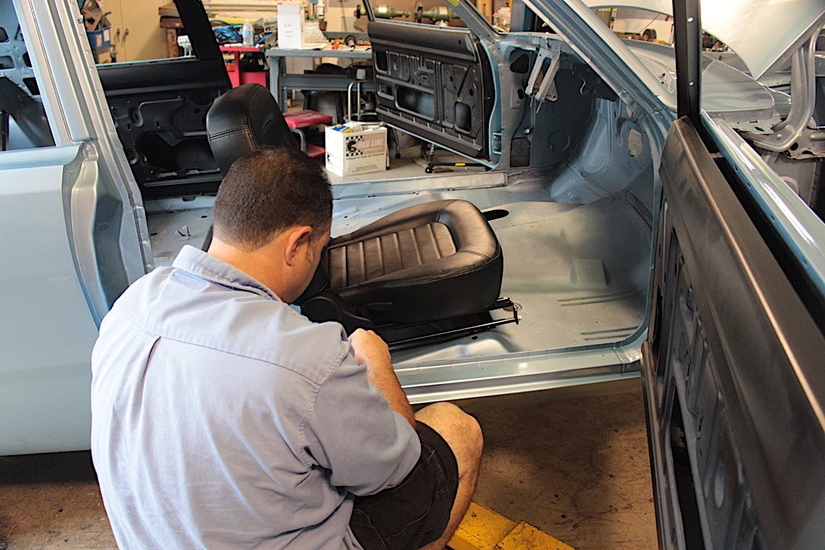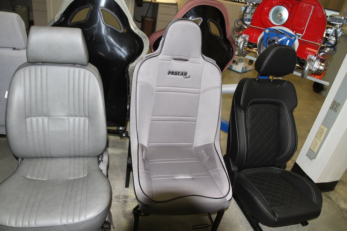 Many times, seats are an afterthought in a restoration project. Some restoration projects needing restored OEM seats require the arduous process of stripping down the old OEM seat to the frame, re-springing and re-padding, then getting a shop to redo the upholstery. The concept behind Procar seats is to provide an affordable alternative to used up and damaged OEM seats. Procar seats come ready to install — easily. The company makes a number of custom mounting brackets, right in the Redondo Beach factory, to cover a myriad of different cars.