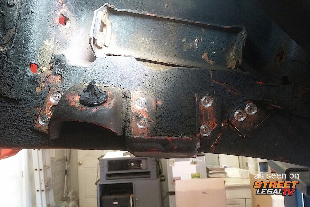 Not to worry, this is standard on B-body Mopars of that generation, and with the Magnumforce K-member those brackets aren’t needed. The additional support was good for the B-bodies in case the suspension bottomed out, however, the additional support would have to come out because it interfered with the way the K-member is mounted. Goldstein suggests that anyone doing a similar installation pays particular attention to these brackets as they no longer serve a purpose with this type of installation.