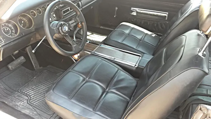 The interior is mostly original with just the front seat covers, carpets, and dash pad replaced. The rest of the interior is factory and the Charger is about done except for paint. I had the vinyl top replaced, (the only thing on the car I didn’t do myself) but not sure what color I’m going to paint it yet. Probably charcoal grey, or the factory green.